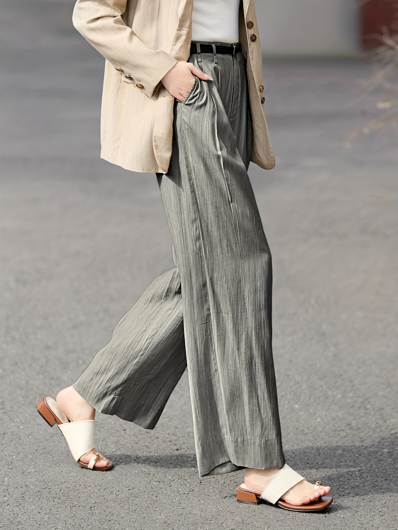 Elegant Wide-Leg Pants XWI Women's High-Waisted Wide-Leg Pants - Non-Stretchy Structured Trousers, Elegant Office to Party Outfits, Lightweight Fabric, Spring\u002FSummer Everyday Pants, Formal & Casual, Solid Color Design, Outdoor Leisurewear