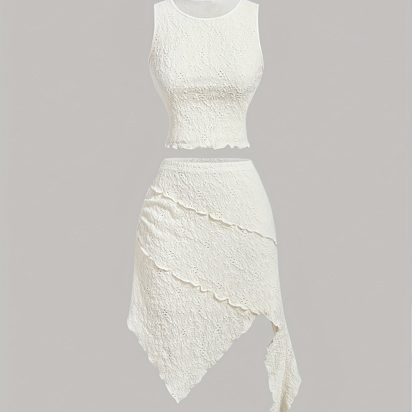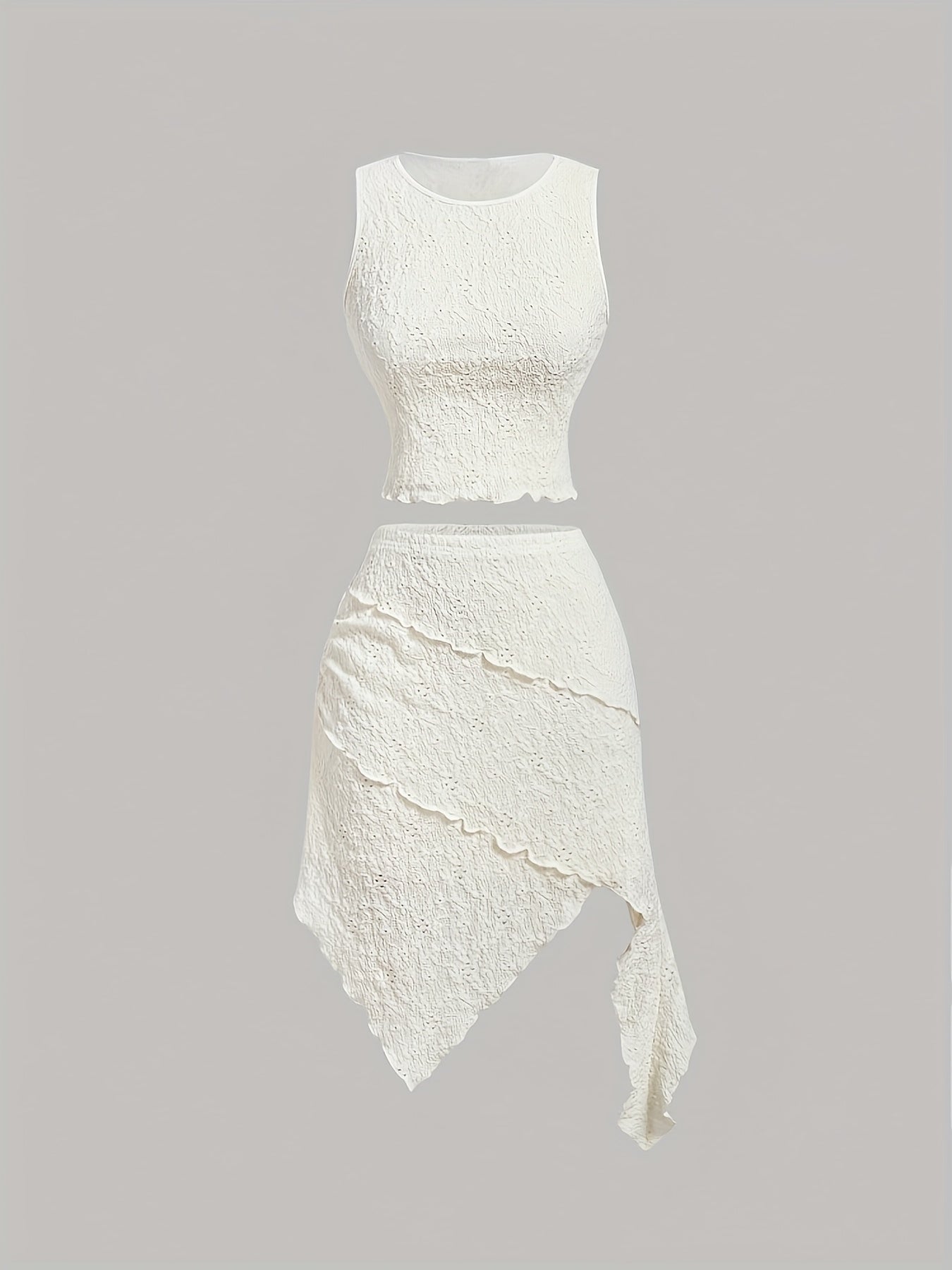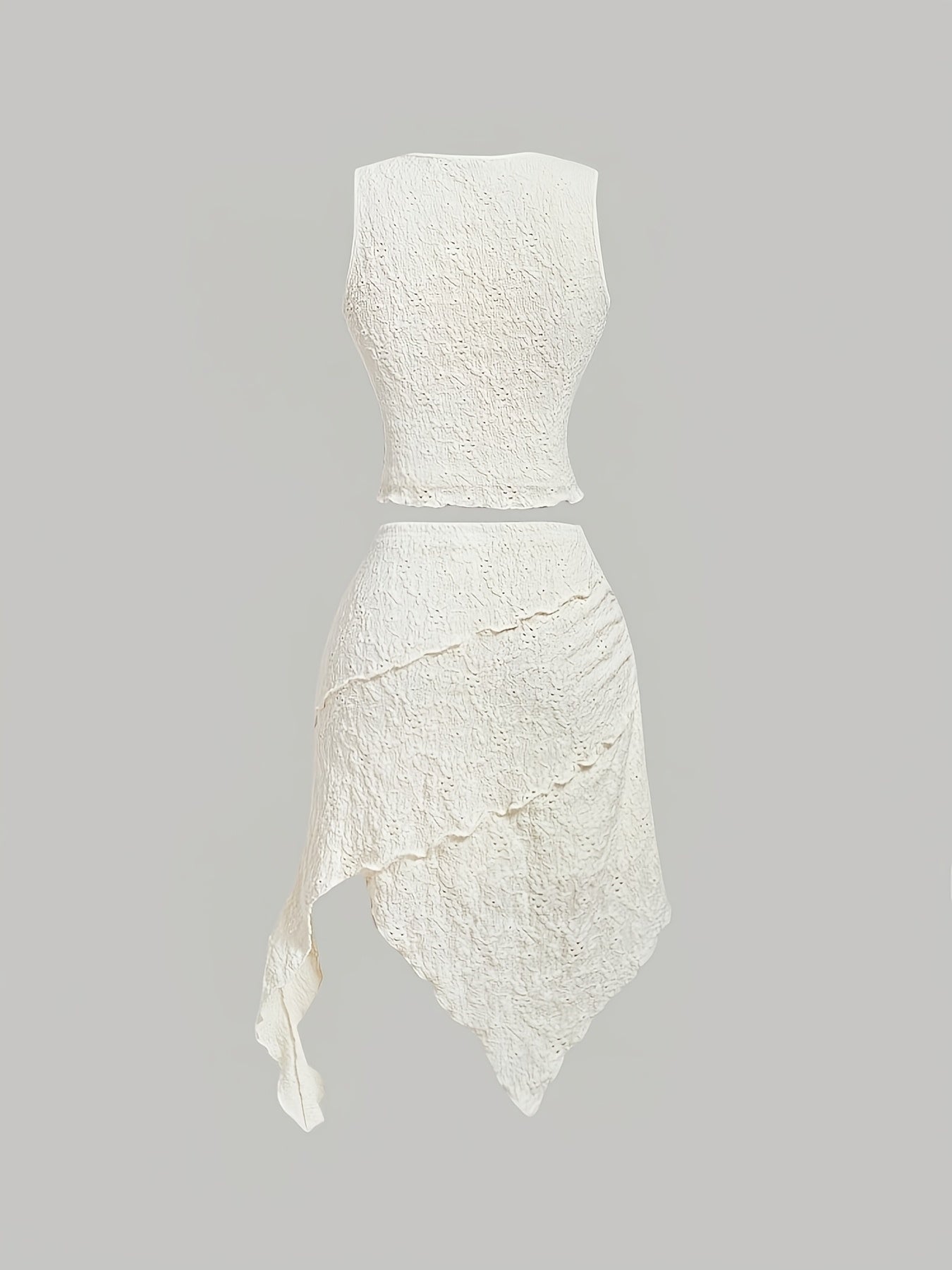 Solid Color Printed Irregular Women's Slim Fit Round Neck Sleeveless Top and Skirt Elegant Fashion Set