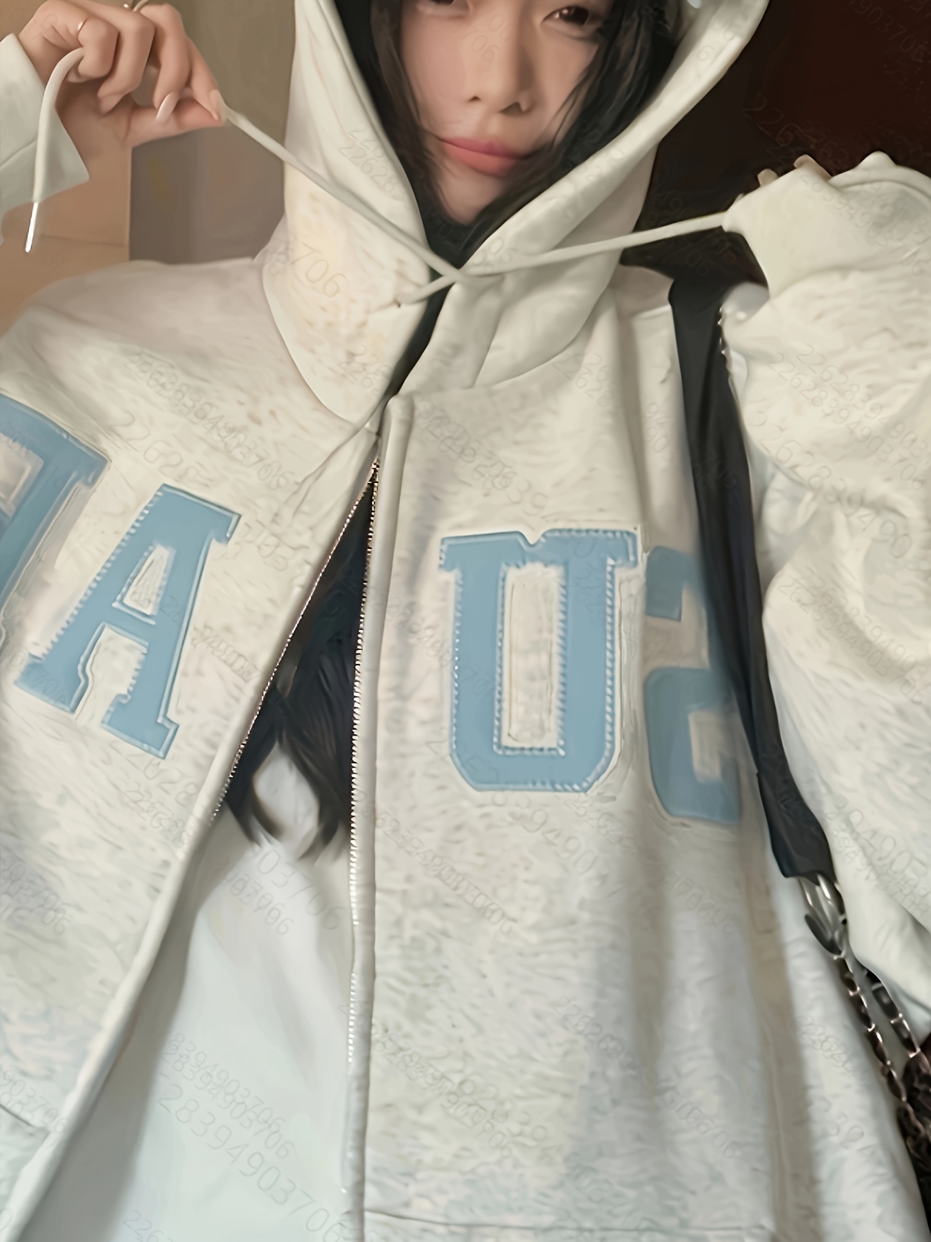 Spring and Autumn Design Sensation Korean Style Loose Versatile Zip-Up Cardigan Jacket, Trendy Hooded Sweatshirt with Comfortable Zipper