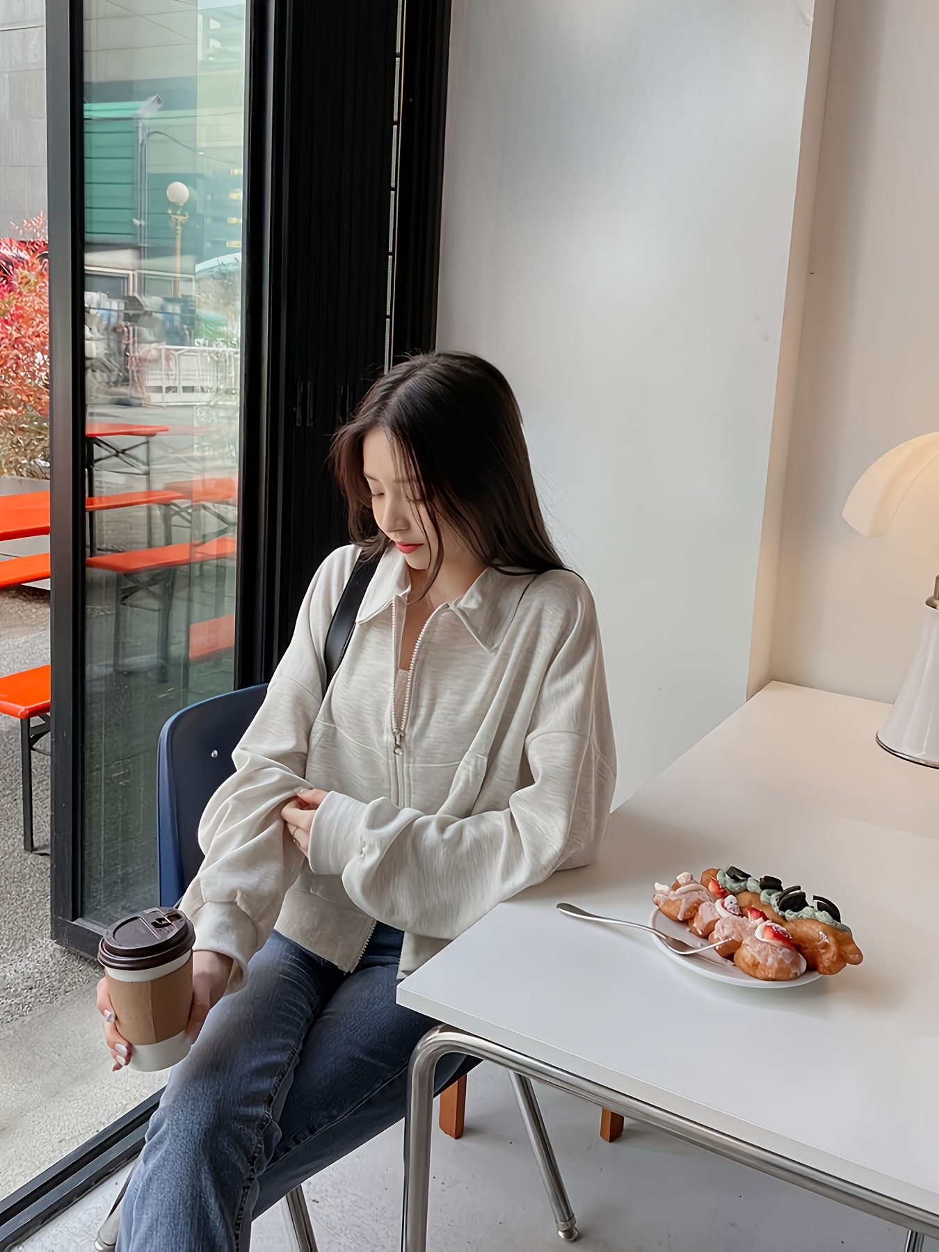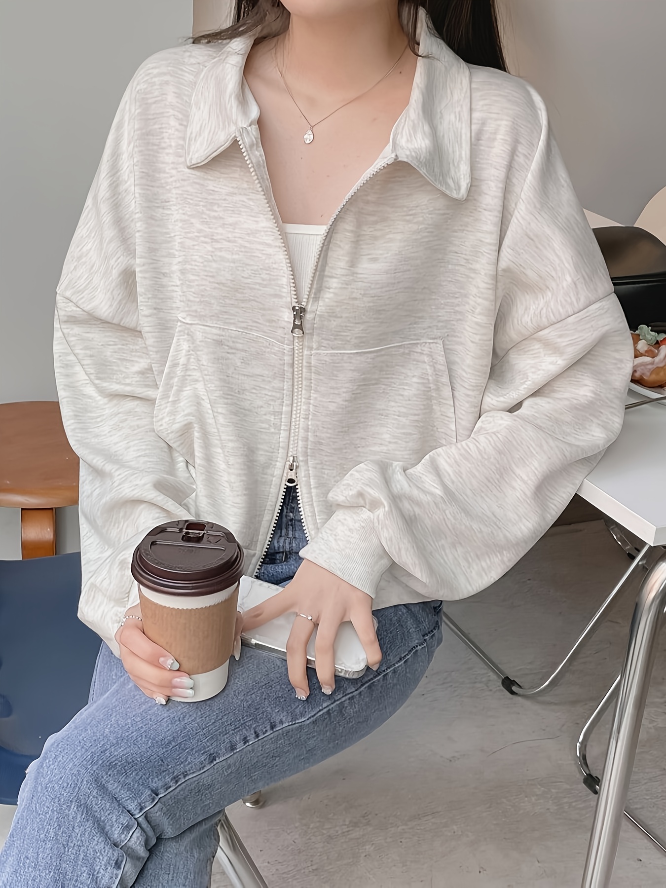 Women'S Chic Korean-Inspired Double-Zip Front Zip-Up Cardigan - Loose Fit Long Sleeve Open Front Jacket with Lapel Collar, Solid Color Spring Summer Fall Layering Piece for Casual or Stylish Outfits, Versatile Fashion, Durable Fabric