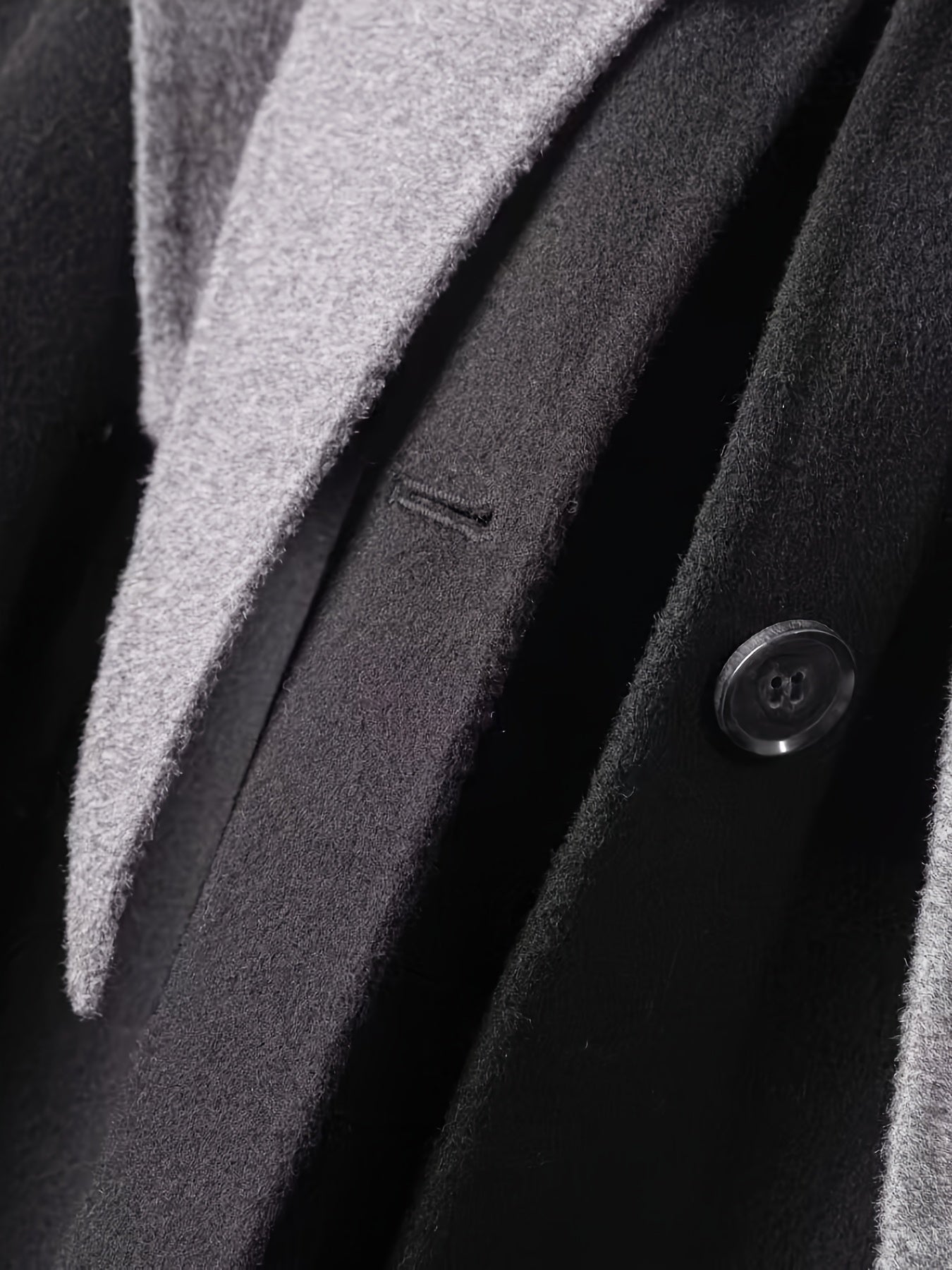 Women's Elegant Black Wool Tweed Coat - Dual-Sided Breasted Navy Collar, Loose Fit for Winter & Fall, Soft & Stylish Outerwear for Casual or Chic Outfits