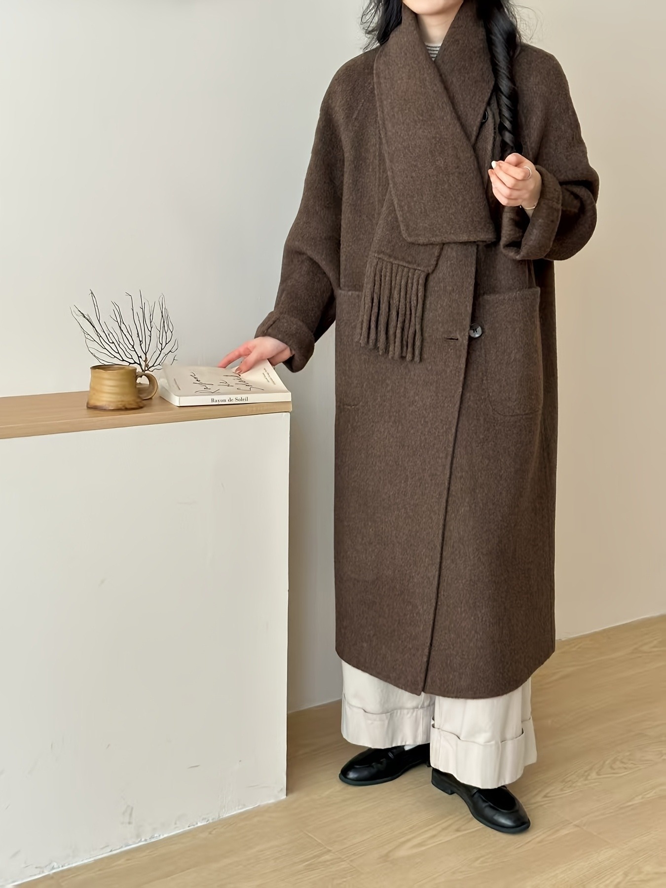 Women'S Elegant Brown Trench Coat with Fringe Detail - Versatile Fall\u002FWinter Outerwear, Long Sleeve, Button-Up Front, Perfect for Casual or Commuting, Casual Winter Wear | Fringe Detail Coat | Buttonup Coat