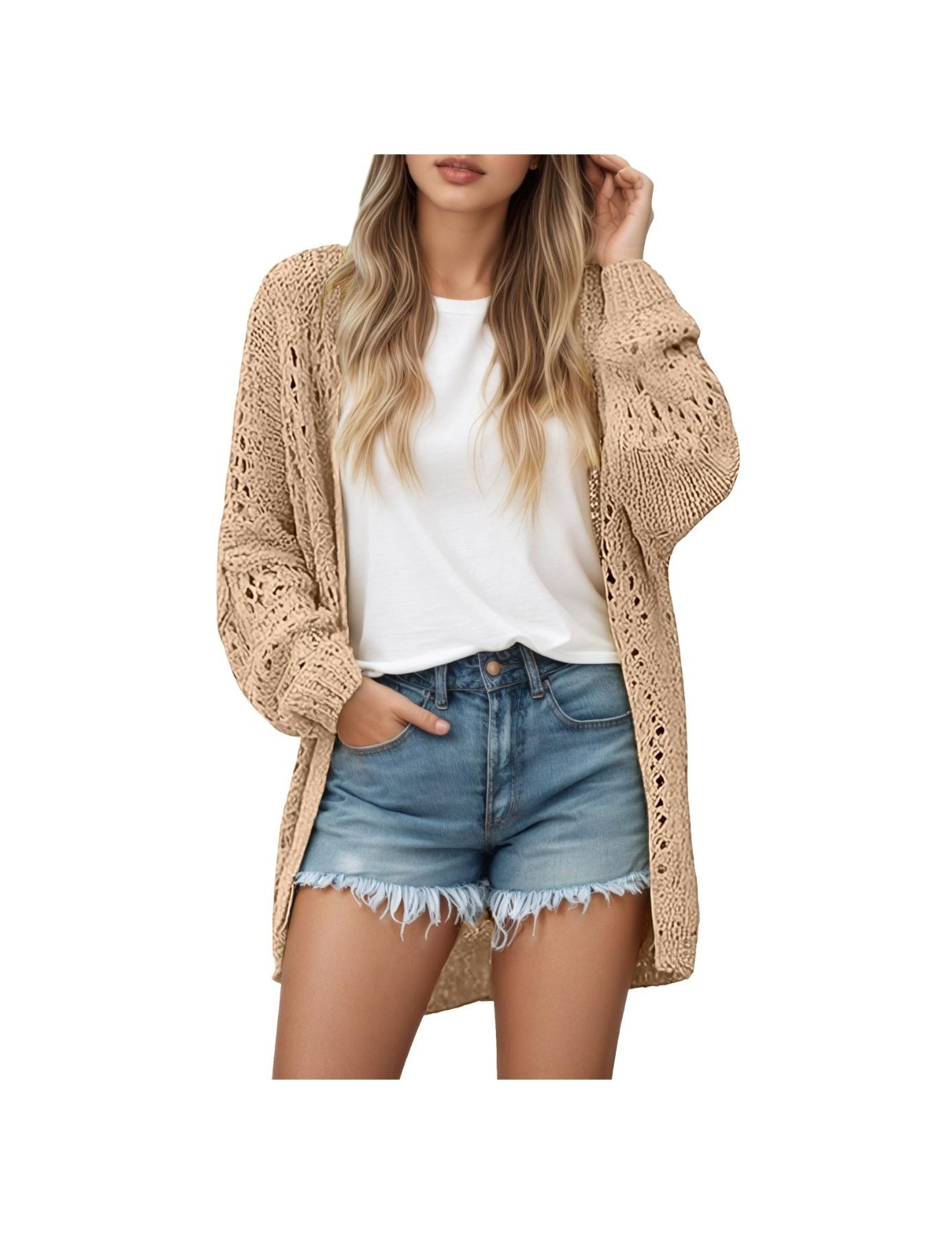 Women's Elegant Open Front Long Sleeve Cardigan Sweater Coat with Fringe Hem & Pockets - Soft Fall Winter Warm Coat, Casual to Semi-Formal Outwear, Solid Color & Contrast Trim (Dry Clean Only)