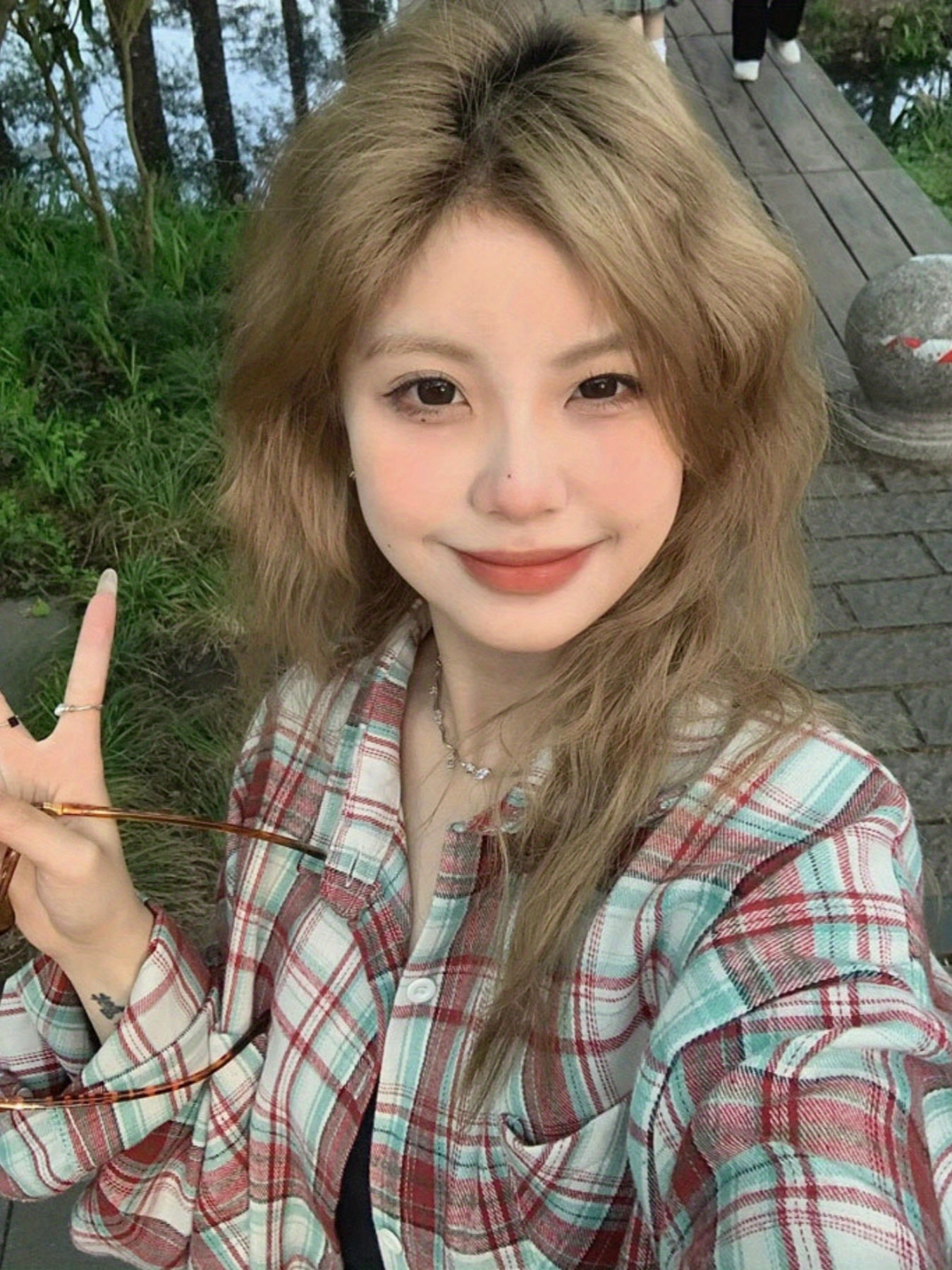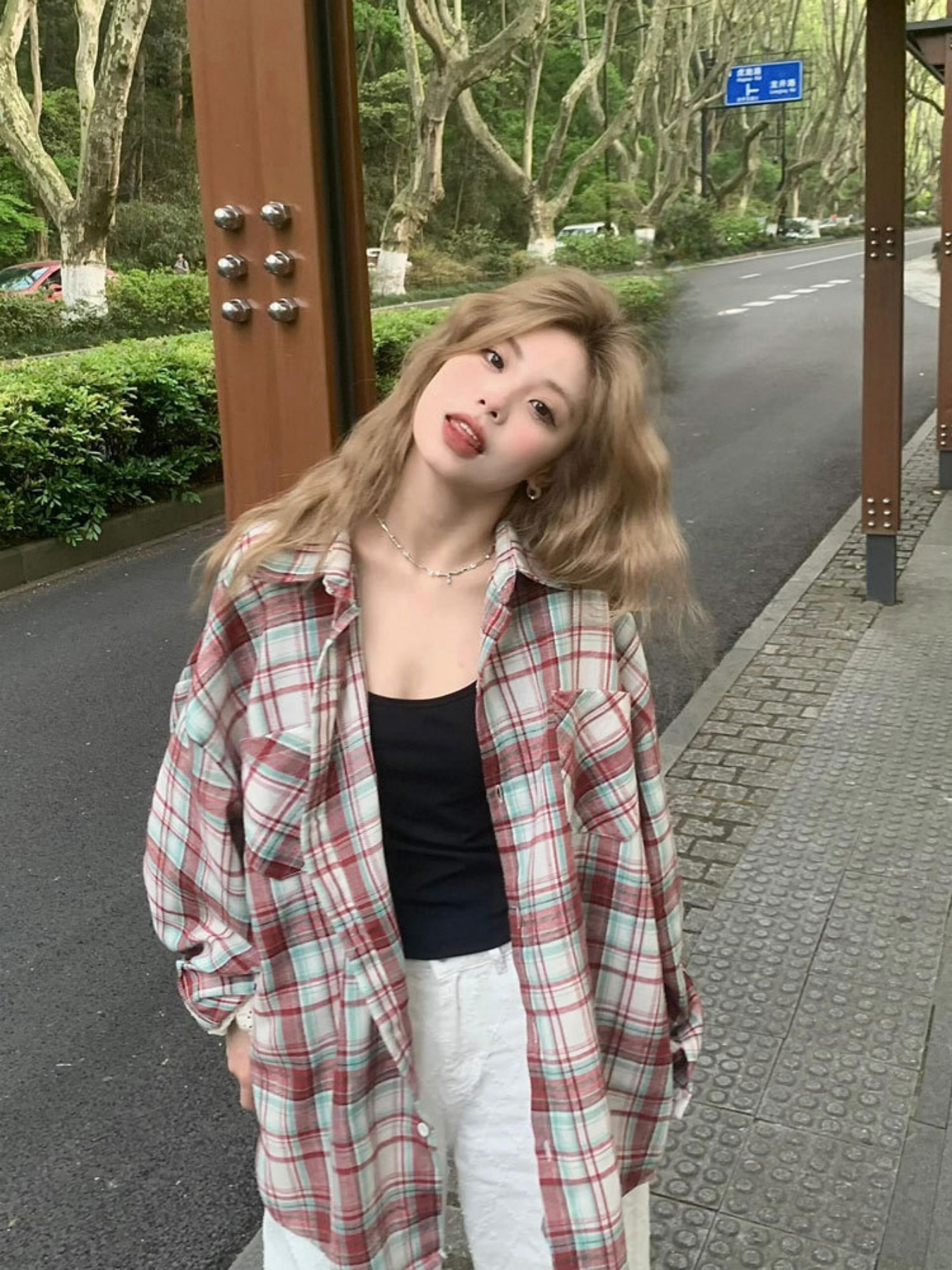 Women's Lightweight Plaid Shirt Jacket - Casual Long Sleeve Sun-Protective Coat with Button- Front, Loose Fit for Spring & Fall, Polyester Blend, Machine Washable