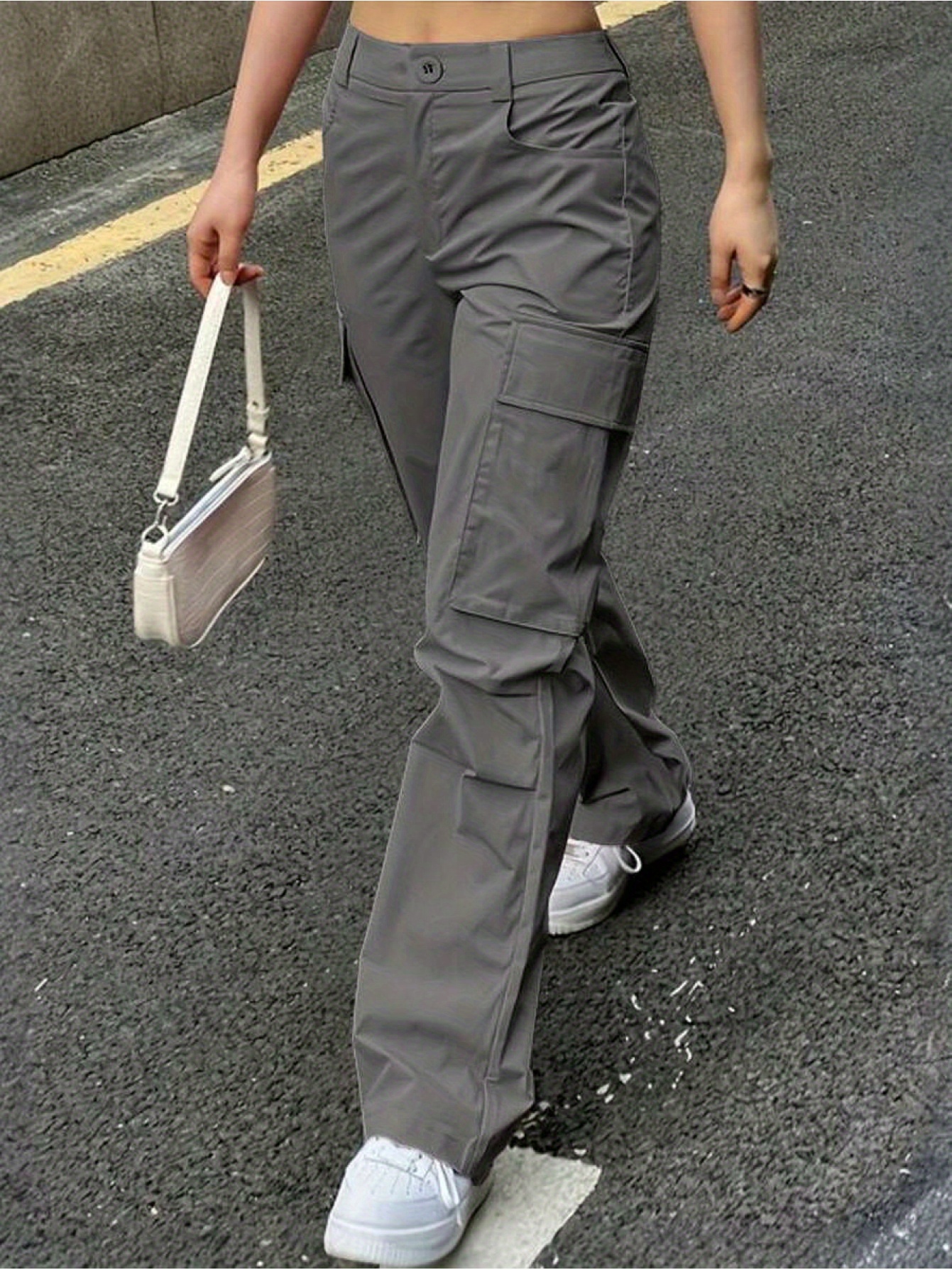 Women's Non-Stretch Cargo Pants - Structured Wide Leg Work Pants with Multiple Utility Pockets, Machine Washable Everyday Pants for Women in Pastel pink\u002FSoft pink\u002F, All-Season Casual Trousers, Leisure Cargo Trousers, Nonstretch Fabric