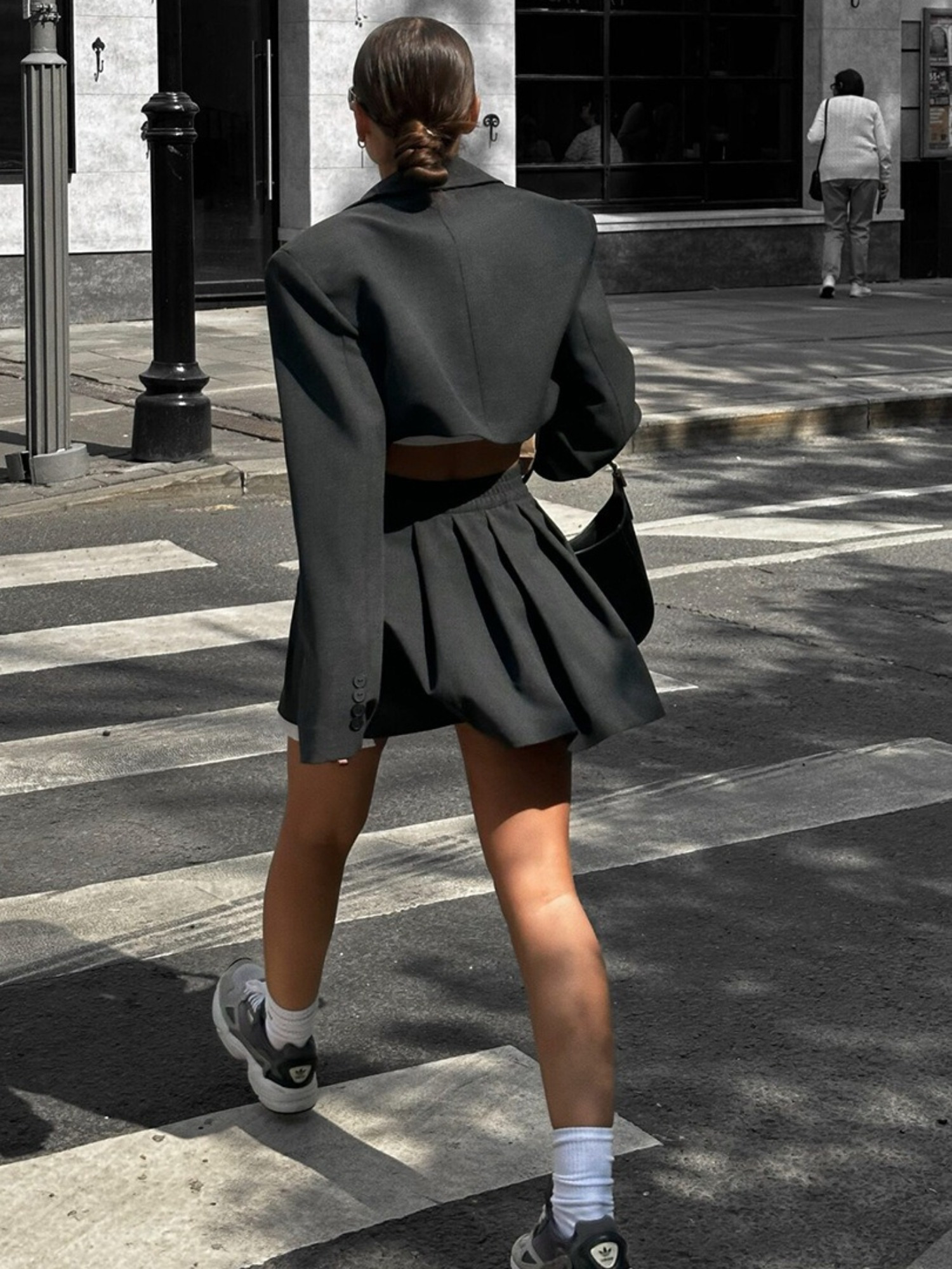 Women'S Y2K - Inspired Two-Piece Set - Cropped Blazer and Mini Skirt, Ideal for Trendy Casual Looks