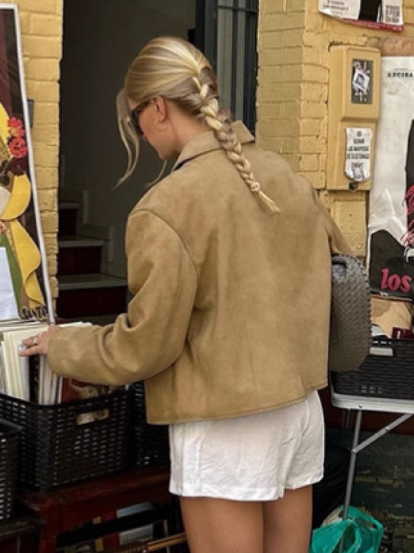 Y2K Notched Collar Jacket Women's Vintage Khaki Quiet Luxury Essential, Spring Outerwear, Lightweight Layering, Elegant Design, Vintage Style, Durable Material, Highquality Stitching, Loose Fit Jacket, Stylish Coat, Fashion Women, Trend Followers